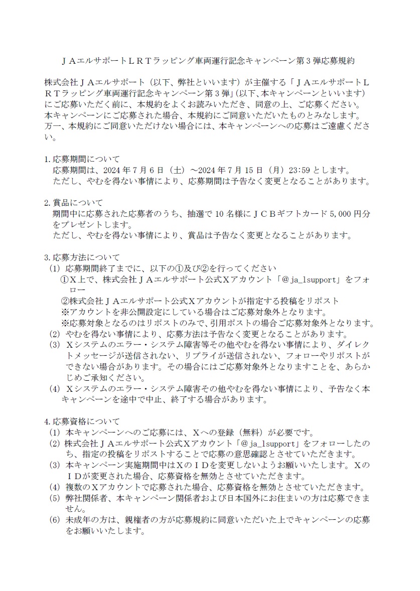 この度、当社公式Xアカウントにて開催した「LRTラッピング車両運行記念キャンペーン」が好評でしたので、