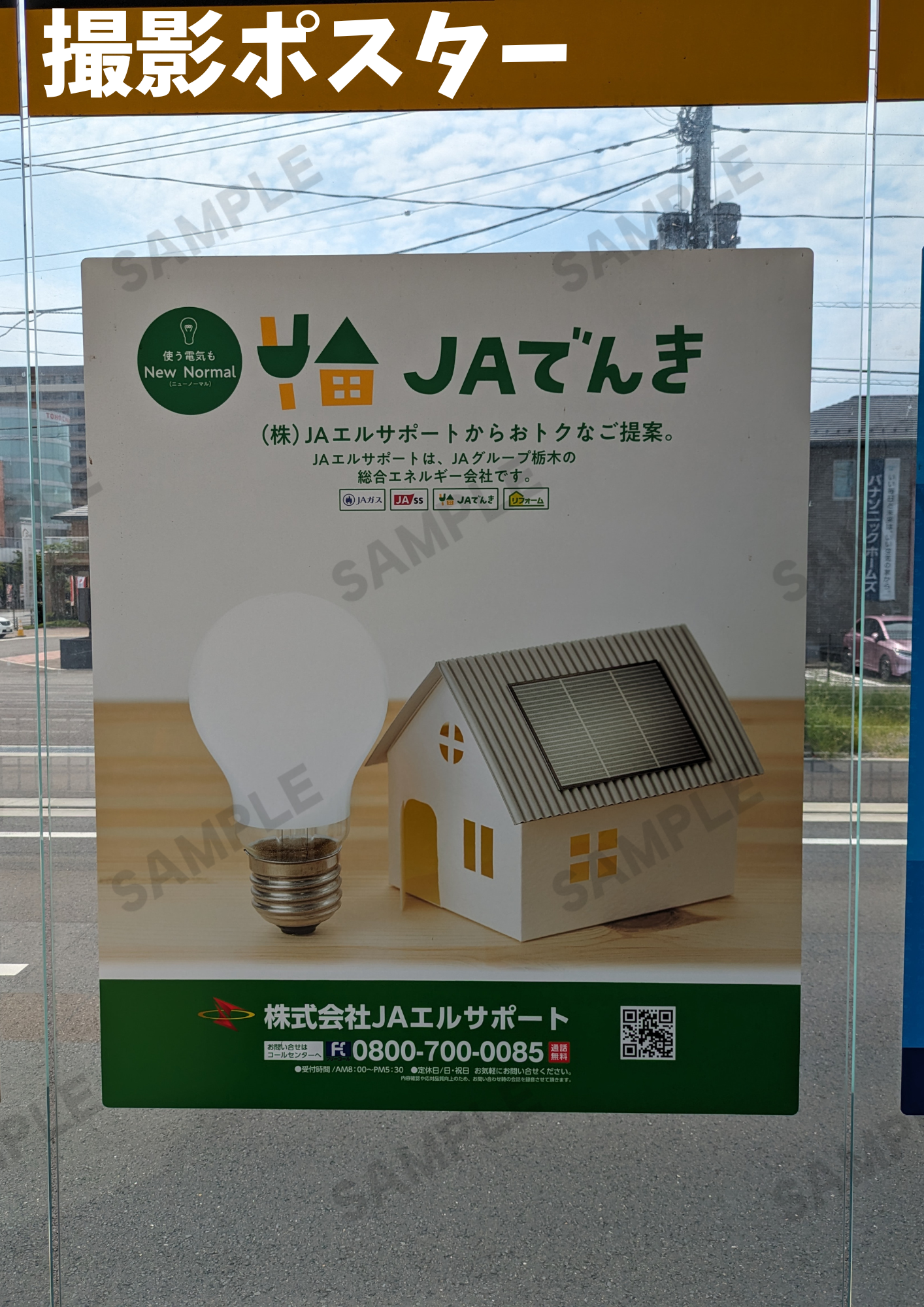 ②栃木県内のどこかのLRT停留所に掲示してある『JAでんき』ポスターを見つけ、下記画像をもとに撮影