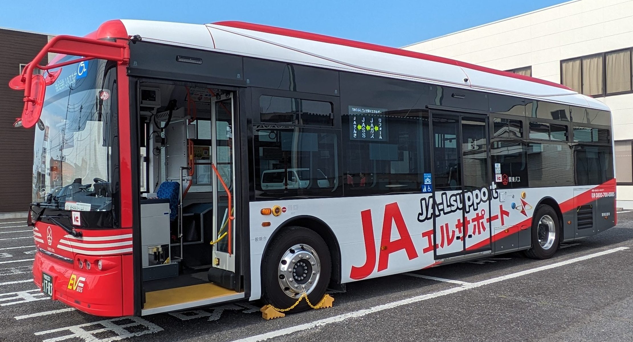 現地には、当社の業務車をイメージしたラッピングEVバスを展示しました。