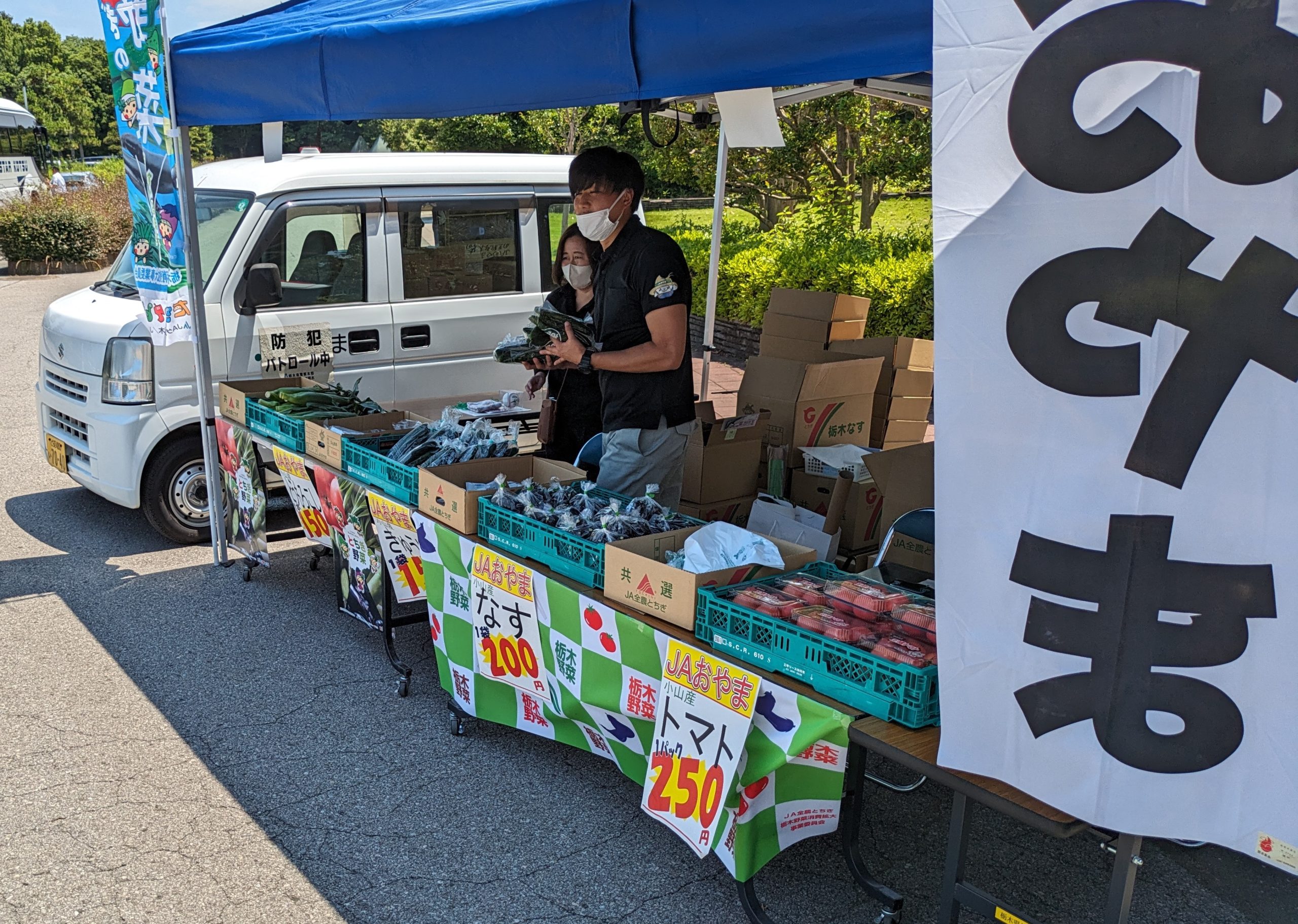 JAおやまによる野菜販売では、新鮮なきゅうり・トウモロコシ・なす・トマトの販売が行われました!