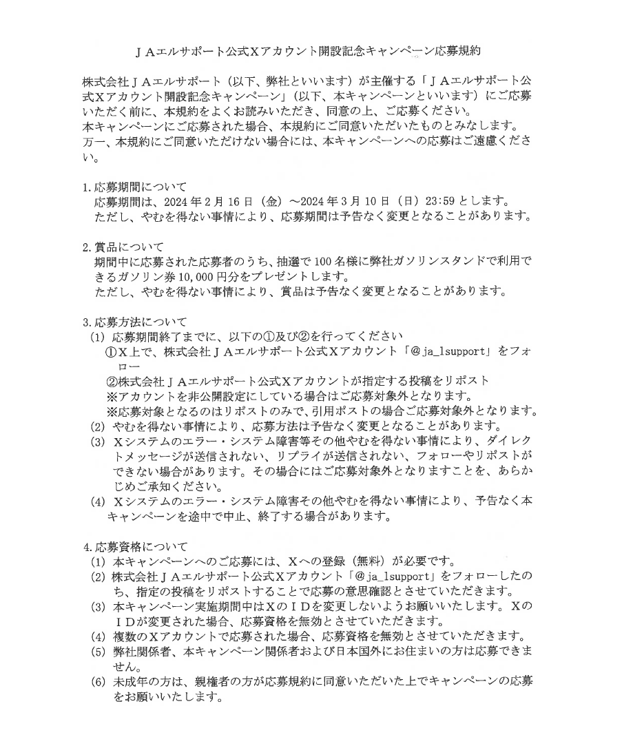 ①当社公式XアカウントJAエルサポート(公式)をフォロー